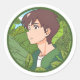 Este adesivo celebra nossa ligação diária com o mundo natural. A design apresenta uma figura anônima, cuja identidade está escondida atrás de um bloco pixelizado, simbolizando que todos podem ser essa figura. A figura está rodeada por uma folhagem verde, vibrante, que representa nossa imersão e conexão com a natureza.