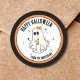 Dê alguns favoritos para festas adoráveis aos convidados numa festa anual de fantasia de Halloween, ou qualquer evento com este adesivo simples e divertido. Um simples visual preto e branco, que tem uma tipografia de fontes em negrito. Um fantasma preto e branco com um coquetel, arco laranja e estrelas. Você pode esconder o arco e o coquetel se quiser um fantasma fofo. Basta clicar no ícone 'olho' no editor de produtos de cheio. Coquetéis De Bebendo E Figurinos Boos E Booze Ghost Happy Halloween Party Round Sticker