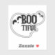 Um adesivo preto-e-branco simples, adorável, com um fantasma minimalista com olhos expressivos e uma pequena boca, perfeito para adicionar um toque assustador, mas fofo, aos artesanatos, notebooks ou designs digitais do Halloween.