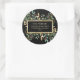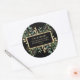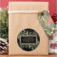 Esses estonteantes adesivos de volta de Natal apresentam verde-natal e folhas com folhas falsas de ouro e groselhas vermelhas, e um quadro central de ouro em um fundo preto moderno.