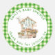 Gingham Verde Cultivado Localmente Obrigado Chá de fraldas. Celebrar a mãe com este tema de mercado design com uma banca de fazendeiros, floral, produtora, roupas para bebês e uma ilustração de cegonha, coelho e abelha. Com um padrão de gingham verde. Personalize facilmente as palavras conforme necessário, que são curvas acima e abaixo da ilustração.
