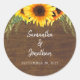 Coloque os envelopes de casamento com este belo adesivo floral rústico. A design apresenta um gráfico de aquarela de um buquê de girassol elegante, acentuado com verde sobre um fundo de madeiras rústicas. Os nomes da noiva e do noivo aparecem no texto de estilo manuscrito de tendências.