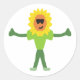 Um girassol feliz sorrindo vestindo tons e um sorriso grande em um desenho divertido.