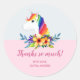 Este chá de fraldas adesivo 'obrigado você', giro e modesto, apresenta um desenho animado de unicórnio arco-íris e flores de aquarela, e tem espaço para você adicionar o nome da mãe em uma letra escrita à mão. O toque mágico perfeito para os seus convites para chuveiros de bebês!