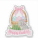 Esta adorável design de Páscoa de de aquarela apresenta um coelho de Páscoa com uma cesta cheia de ovos de Páscoa pastel e amarrada com um arco de xadrez de gingham rosa, Diz "Páscoa Hoppy" mas você poderia personalizar com um nome ou outro ditado também.