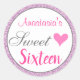 Garota e brilho lilás púrpura brilham princesa Doce Dezesseis 16 adesivos redondos clássicos com rosa quente e escrevendo de cinzas. Você pode adicionar facilmente o nome de sua escolha e alterar a cor e a fonte usando a opção personalizar!