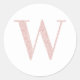 Letra serif clássica W com um efeito brilhante rosa a-ouro pálido contra autocolantes brancos clássicos redondos. O gráfico de brilho reluzente é um efeito criado digitalmente e será impressão como uma foto. O envelope monograma sela para a celebração de aniversário da sua amiga. Você pode personalizar a cor de fundo ou usar um dos filtros do sistema como uma camada de cor para a arte digital. Este gráfico será transferido para produtos médios e pequenos.
