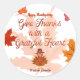 A beautifully illustrated fall leaf with a sweet Thanksgiving message perfect for expressing gratitude this holiday season. This sticker adds warmth to journals, greeting cards, envelopes, gifts, or seasonal décor. Customizable option available.