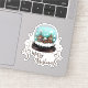 Vidro Festivo Snowball Foliage Winter Village Foliage Merry Christmas Holiday Stickers. O conto de fadas se casa no inverno com neve e belos flocos de neve. Lindas plantas de escalada marrom. Um desejo Feliz de Natal em um roteiro de tendências. Você pode mudar qualquer texto no adesivo.