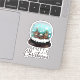 Vidro Festivo Snowball Winter Village Foliday Stickers. O conto de fadas se casa no inverno com neve e belos flocos de neve. Um desejo Feliz de Natal em um roteiro de tendências. Você pode mudar o texto no adesivo.