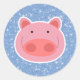 Ilustração da cabeça de um porco giro sobre fundo azul brilhante