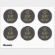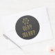 Um adesivo circular único, festivo, inspirado na safra, com um floco de neve e a frase "Muito Feliz" em brilho dourado sobre fundo de carvão. Perfeito para embrulho de férias, decoração e cartas!