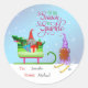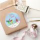 Este adesivo bonito tem um gnomo Papai noel em vermelho, sentado num trenó cheio de presentes e uma árvore de Natal. Ao lado do trenó está um gnomo vestido com um casaco roxo de coordenação e um chapéu que esquia. O fundo é azul com flocos de neve girando e caindo sobre o chão coberto de neve. Personalize-o com quem o presente é e de quem ele é clicando em "personalizar este modelo". Isto é perfeito para presentes, favoritos para festas e para selar boas bolsas cozidas!