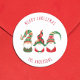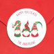 Um autocolante de férias simples e giro, ao estilo nórdico, com três gnomos de Natal giros, escandinavos, com chapéus e tunicados vermelhos e verdes sazonais. Você pode personalizar um "Feliz Natal, Feliz Natal," etc., saudação e seu nome em tipografia divertida.