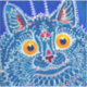 Doente com a pintura animal de Louis Wain A Cat em Estilo Gótico (1860-1939). Um gato azul psíquico olha amigavelmente com os olhos amarelos para o espectador. Um presente maravilhoso para amantes de gatos e arte inglesa.