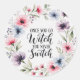 Este adesivo branco apresenta um vibrante impressão floral de aquarela com a mensagem Uma vez que Você Vai Bruxa Você Nunca Muda.