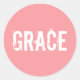 Um adesivo redondo colorido cor-de-rosa com texto branco Grace para belas letras e presentes doces e suculentos.