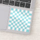 Um padrão de tabuleiro de xadrez em branco azul. Os tons azuis claros adicionam quadrados geométricos suaves sentem modernos e eternos.