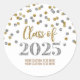 Classe de nome personalizado de adesivos de graduação 2025 com padrão de ouro e prata confetti.