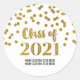 Classe de nome personalizado de adesivos de graduação 2021 com padrão de configuração dourado com texto de estilo moderno com letra.