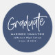 Adicione um toque de na moda aos envelopes de graduação e bolsas de favoritos de festa de formatura com adesivos personalizados de graduação. Os adesivos de graduação apresentam "formando" em um script manuscrito com um fundo de marinho ou cor de sua escolha. Personalize os adesivos de graduação do marinho adicionando o nome do formando, o nome da escola e o ano de graduação.