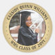 Adicione um toque personalizado aos anúncios de graduação da faculdade ou do segundo grau e aos convites com esses adesivos personalizados de fotoredondos / selos de envelopes. (DICA DE IMAGEM: Uma maneira fácil de centralizar uma foto exatamente como você deseja é recortá-la antes de carregá-la no site do Zazzle.) Todo texto é simples de personalizar para incluir o nome da escola, formando de parabéns, amor e obrigados, citação inspiradora, ditado motivacional, etc. Design apresenta uma imagem de sua escolha, borda metálica falsa em preto e ouro, e formando de tipografia moderna e na moda em círculo. Faz uma adição elegante a favores e decorações de festas de formatura. Como opção, mude o texto curvo para um nome e endereço para uso como etiquetas de endereço de volta redonda em convites ou notas de agradecimento. Essas etiquetas versáteis podem ser usadas em qualquer ocasião, como aniversário, aniversário, casamento, chá de panela, chá de fraldas etc.