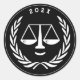 Adesivos de presente para graduados em direito ou etiquetas de festa com balanças criativas da Justiça personificada. Edite o texto para alterar o ano de formatura ou personalizar.