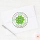 Esta elegante etiqueta de adesivo de feriado personalizada apresenta uma amostra de um arco de presente verde gigante no centro. Dois quadros verdes de brilho falsos circulares delimitam o arco. Uma amostra de saudação Feliz de Natal é impressa no topo com um nome de família no final. Você pode personalizar o adesivo para incluir seu próprio nome de família ou outro texto personalizado.