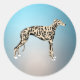 Imagem de greyhound listrado em um fundo azul e cinza.