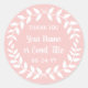 Adicione um toque final personalizado às lembrancinhas e bilhetes de agradecimento com adesivos redondos personalizados com coroa de louros. Todo o texto neste modelo é simples de personalizar para qualquer ocasião, como casamento, chá de noiva, formatura, festa de aniversário, aniversário de casamento ou aposentadoria. Altere ou exclua qualquer um dos textos para criar selos de envelope para convites, anúncios ou lembretes de data. O design botânico moderno em rosa e branco apresenta uma coroa de louros branca, caligrafia rústica e tipografia clássica e sofisticada. Esses rótulos redondos elegantes adicionam um toque único e personalizado à celebração de um dia especial.