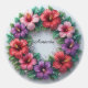 Uma grinalda circular de hibisco com flores vermelhas, rosadas e roxas, folhas verdes exuberantes e contas espalhadas, perfeita para decoração tropical, celebrações, convites e estilo de casa vibrante.
