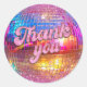 Você ama a bola de discoteca dos anos 80? A bola de discoteca dos anos 70? Olhe para o nosso "Groovy Disco Ball Hot Pink Glitter" Dourado Obrigado Clássico Round Sticker! Celebre em estilo com nosso vibrante obrigado de bola de disco de aniversário, seu adesivo de presente com uma bola colorida de disco espelhada em ouro e uma magnífica tipografia com um brilho digital e efeito dourado. Este obrigado de disco que você cola é melhorado com estrelas usando um adorável efeito digital rosa e dourado. Este adesivo de favor de aniversário promete uma noite de brilho e diversão. Prepare-se para definir o tom perfeito para uma festa de aniversário inesquecível! Esta design traz um toque de vidro para o seu dia especial.