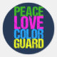 Um presente bonito de guarda colorido para alguém que faz a bandeira girando com a banda de marchar na escola. A Guarda Peace Love Color é escrita em verde bonito, rosa quente, azul e amarelo neon.