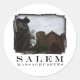 O fundador de Salem Roger Conant fica guarda e guarda um olho Puritano no Museu das Bruxas no coração da Cidade das Bruxas.