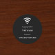A Wi-Fi symbol. Add your wi-fi name and password for your customers/guests. Black background, white text.