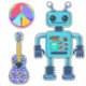 Este robô é um robô estilo hippie, com sua placa de paz e violão de flor paisley, tão fofo! de Cherie
