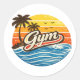 Retro sunset design featuring Gym in a vintage beach sunset style with palm trees, ocean waves, and birds. A classic retro aesthetic perfect for personalized name gifts and everyday wear.