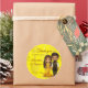 Haldi sangeet fofo casal de noiva indiana, caricatura química de cartoon hindu obrigado de casamento você favorece adesivos, fundo amarelo e borda dourada do casamento indiano haldi mehndi sangeet benvinker com personagens de desenho animados bonitinhos, verifique seu tamanho e um toque personalizado para seus favores haldi sangeet