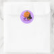 este adesivo tem imagens clássicas do Dia das Bruxas de um jack-o-lanterno desenhado e colorido, chapéu de bruxa, máscara de festa e vassoura, laranja roxo e preto