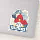 “Handmade Is My Resistance” contour-cut sticker features a bold red cardinal knitting on a pile of yarn in a dusty blue, retro-modern, mid-century–inspired design. Part of the Cardinal of Resistance series, this maker-themed art celebrates knitting, crafting, bookbinding, fiber arts, and creative self-expression. A thoughtful gift for knitters, crafters, artists, and anyone who believes handmade matters—for the soul and for the world. Perfect for laptops, water bottles, journals, sewing machines, and craft rooms.