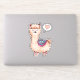 Pintor aquoso, bonito, de lama bronzeada, branca, com um pano multicolorido e padronizado nas costas. À direita está uma bolha de fala com um dentro de coração rosa giro.