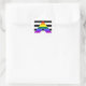 O arco-íris V representa o A na palavra ativismo, e as cores do arco-íris representam a bandeira orgulho gay. As listras pretas e brancas representam heterossexualidade.