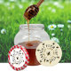 Mini adesivo faz uma etiqueta de promocional atraente para o seu mel e colmeias. Ou - coloque alguns grandes adesivos diretamente na sua Mesa de Mercado para exibir mel, própolis, pólen, colmeia, lábio de cera de abelhas e velas ligadas.