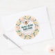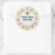 Forma hexagonal moderna sobre uma coroa floral colorida e o logótipo da abelha de mel - ou carregue a sua própria imagem - acima do texto personalizado para o seu nome e tipo de mel, cera de abelhas ou quaisquer produtos das suas abelhas. Adicione informações de contato em texto redondo e peso líquido do mel, além de informações adicionais sobre até três linhas de texto.