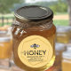 Marca minimalista para apicultores modernos. Design de abelha de mel estilizada com borda hexágona sobre fundo amarelo Provence.