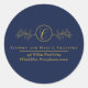 A luxurious blend of dark navy blue and gold tone sets a tone of timeless elegance. Your return address is accented by an emblem created with holly motifs and your monogram initial in center, enclosed in a double circle in a gold tone. Perfect for your holiday mailings from personal to corporate.