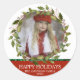 Adoráveis adesivos para envelopes de férias/cartões de saudação com FOTO. Coroa vermelha e seca com bagas e verde. Buquê floral de aquarelas com flores de poinsettias. Personalize adicionando sua foto e seu nome, ano. Perfeito em enviar para sua família e amigos.