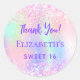 Adesivo Holográfico roxo rosa Doce 16 Obrigado