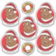 Conjunto de sete autocolantes de vinilo cortados com uma ilustração de um feliz sorridente homem africano americano, que está vestindo um chapéu vermelho de Papai Noel, em fundo vermelho; cinco autocolantes do homem e dois autocolantes com uma coroa de Natal; com um modelo de texto personalizável para seu nome ou mensagem