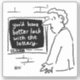 Homem num caixa eletrônico recebe a mensagem na tela "Você tem mais sorte com a loteria". Cartoon é do cartunista britânico Nigel Sutherland.